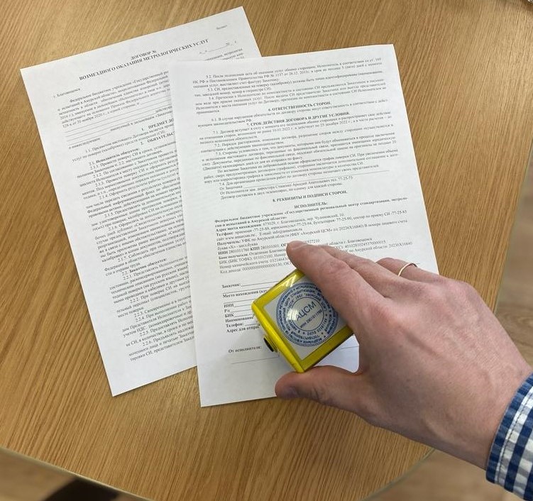 Если вы согласны с условиями типового договора, вы можете заполнить необходимые реквизиты и предоставить договор на подпись в ФБУ Амурский ЦСМ Росстандарта.