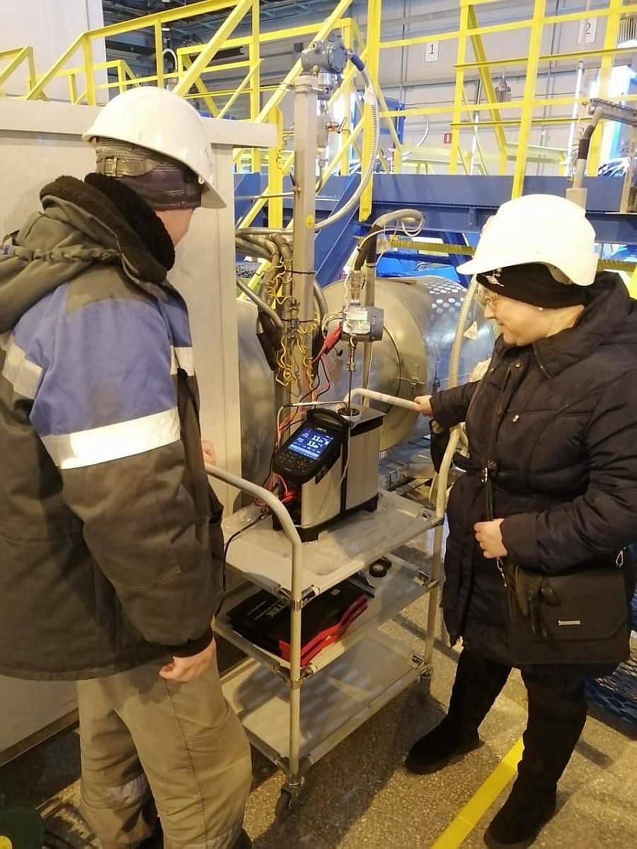 На фото инженер по метрологии Амурского ЦСМ Росстандарта Бауэр Любовь осуществляет поверку термопреобразователей сопротивления и преобразователей, измерительных в компании «МЦЭ - Инжиниринг».