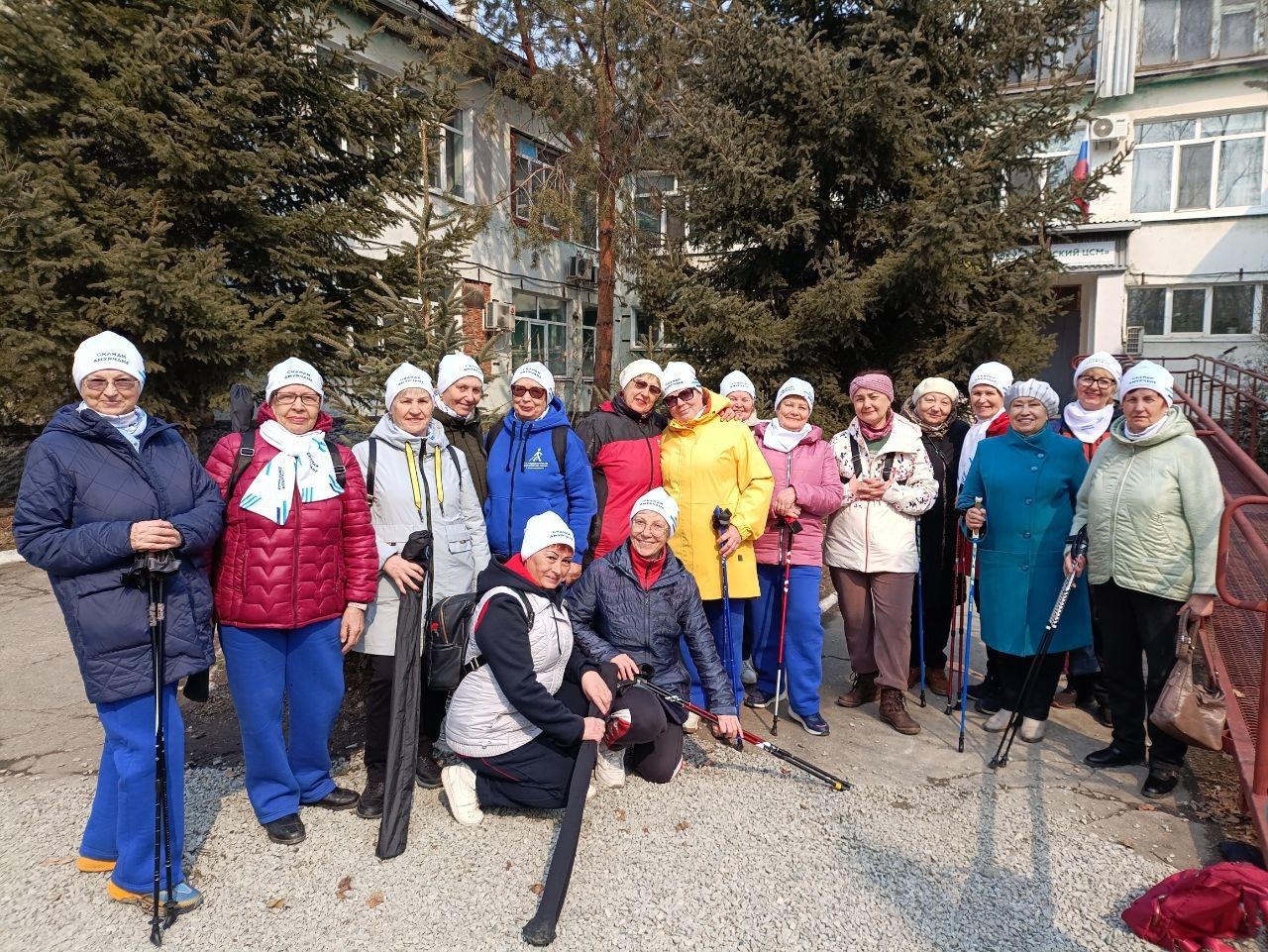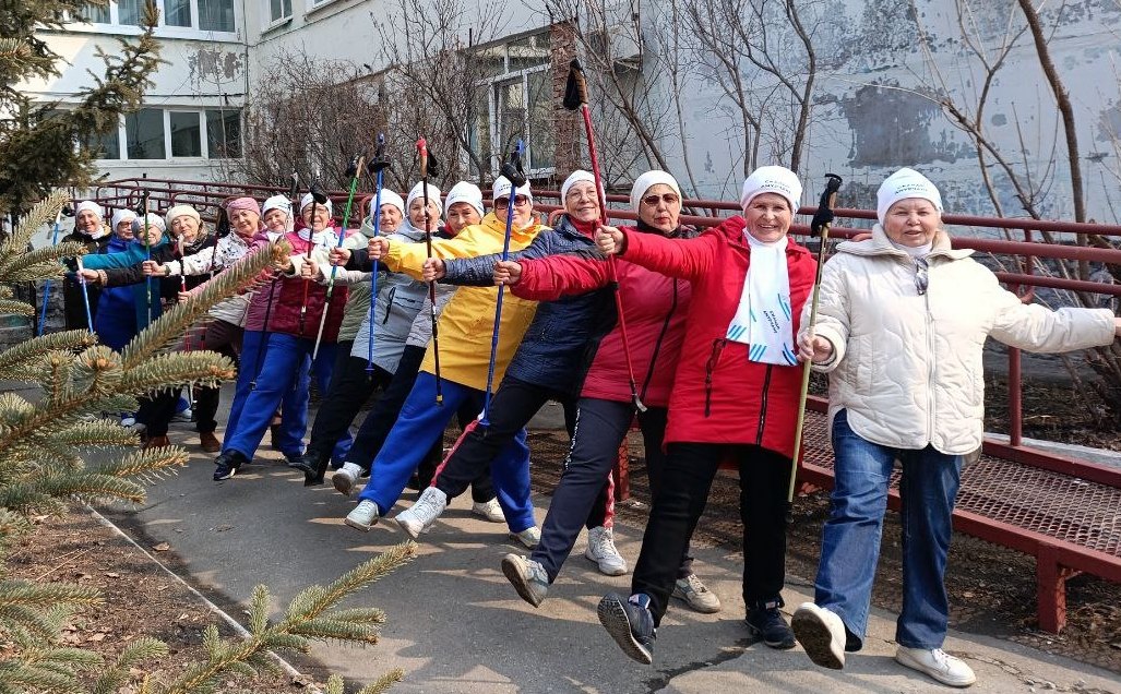А наши новые друзья из клуба «СкандиАмурчане», пока их тонометры проверяют, не теряют время зря! Территория Амурского ЦСМ Росстандарта позволяет провести тренировку.