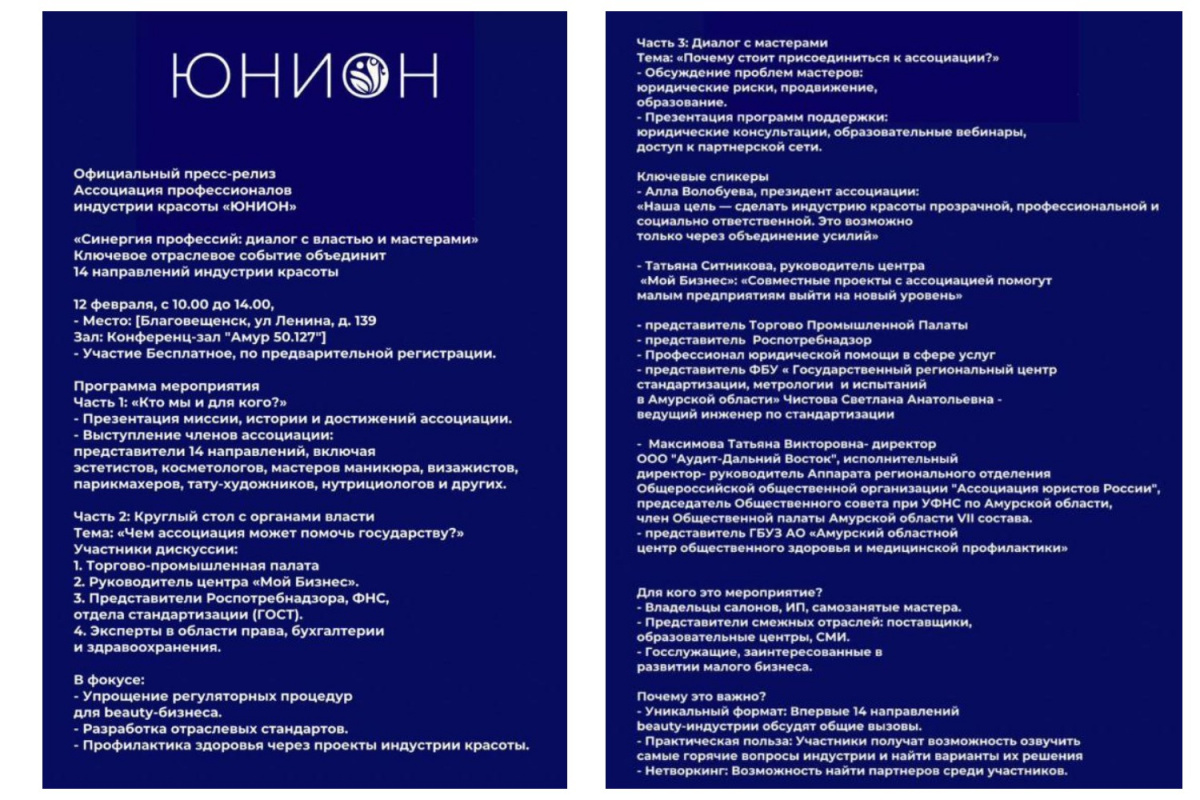 На мероприятии «Синергия профессий: диалог с властью и мастерами», которое объединит 14 направлений индустрии красоты Амурского региона, ведущий инженер по стандартизации Амурского ЦСМ Росстандарта Светлана Чистова расскажет о стандартах, о конкурсе «100 лучших товаров 2025 года».