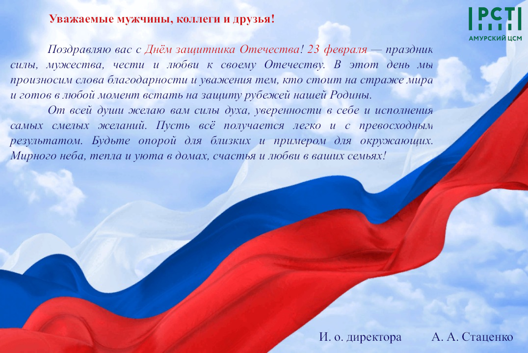 Поздравление руководителя ФБУ «Амурский ЦСМ» с Днём защитника Отечества 2026