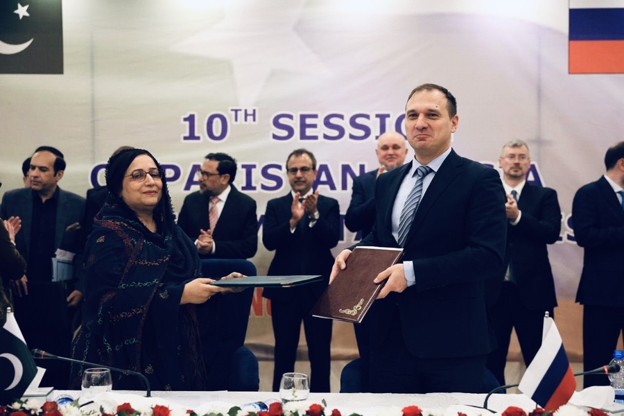 ИСЛАМАБАД, ИСЛАМСКАЯ РЕСПУБЛИКА ПАКИСТАН, 28 ноября 2025 г. – В рамках заседания Межправительственной Российско-Пакистанской комиссии по торгово-экономическому и научно-техническому сотрудничеству, прошедшего под сопредседательством Министра энергетики РФ Сергея Цивилева и Министра нефти Республики Пакистан Аваиса Легари, был подписан меморандум о взаимопонимании в области стандартизации, метрологии и оценки соответствия между Росстандартом и Управлением по стандартам и контролю качества Пакистана (PSQCA). Свои подписи под документом поставили заместитель руководителя Росстандарта Евгений Лазаренко и генеральный директор PSQCA Сайеда Зиа Батул.
