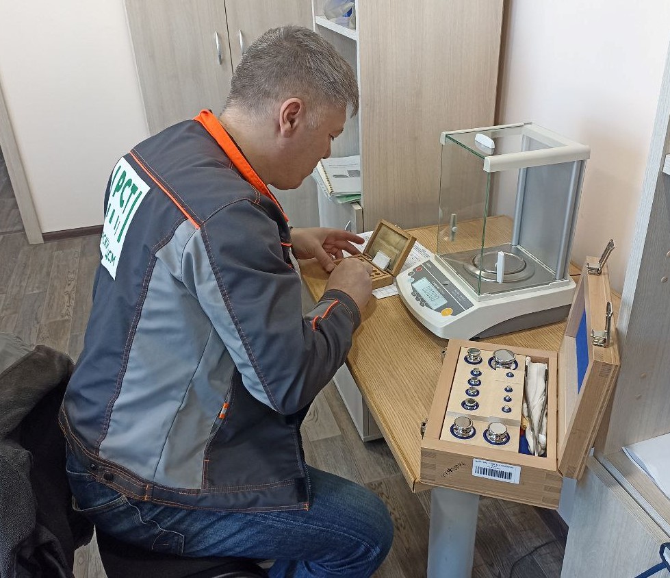 Сергей Крумкачев — метролог Амурского ЦСМ — поверил на месте эксплуатации весы лабораторные электронные по заявке АО «Прииск Соловьевский».